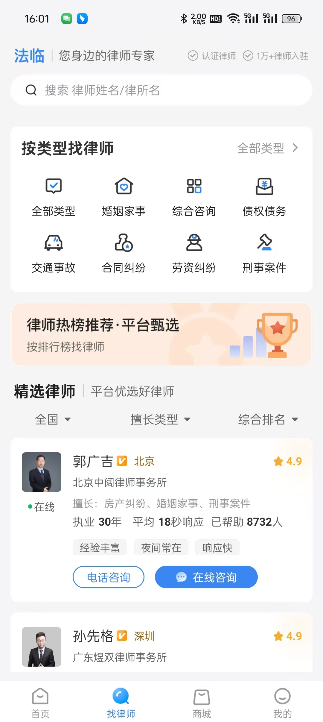 一款可以在线 法律咨询的软件,法律问题 一对一服务,代理案件 擅长领域